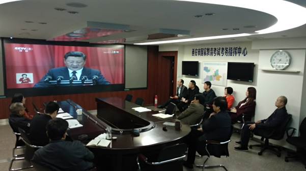西安市教育考试中心全体干部职工观看十九大开幕直播