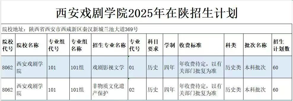 关于公布西安戏剧学院2025年在陕招生计划的公告