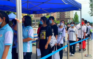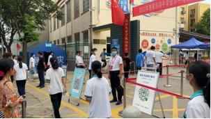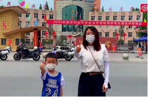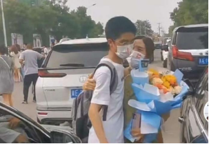 送考家长早早送孩子到达考点,生怕迟到或有一点闪失,他们也很有仪式感,有几个认识的家长相约穿着一样的红色旗袍,手拿葵花,亲手为孩子戴上锦鲤附体的口罩,一起为孩子加油助威、祈祷祝福;有的孩子刚好今天过生日,家长在考点门口与孩子合影留念并装饰上德胜门、状元门;有的家长交流中说,孩子爸爸负责接送孩子、妈妈负责做好饭,咱不逼孩子,只要提醒孩子注意休息,考试正常发挥就行了;当然也有两三岁的孩子送哥哥姐姐考试的,有爷爷奶奶不怕酷暑场外等候孙子的……