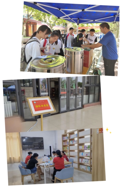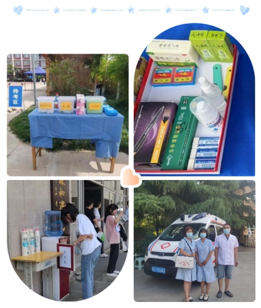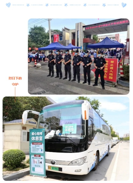 在考点,针对考试期间高温天气,除准备了防暑降温药品、饮品外,还采取多种方式积极为带队老师、考生家长提供遮阳避暑和休息场所。