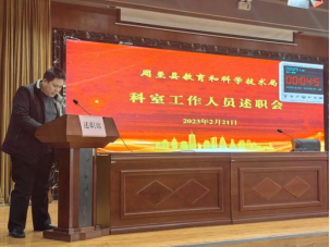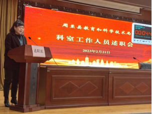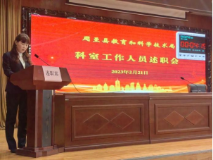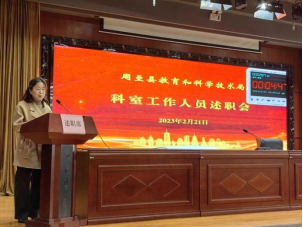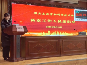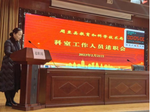 2月21日上午8:00—12:00,西安市周至县教科局在局15楼会议室召开局机关科室工作人员述职会。县政府教育总督学何宣讲分管的7个科室40余名工作人员逐一上台进行了5分钟述职汇报。各分管领导出席、其他科室同志旁听,同时邀请基层学校代表、服务对象代表等列席。