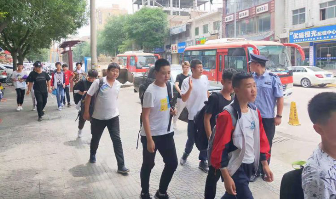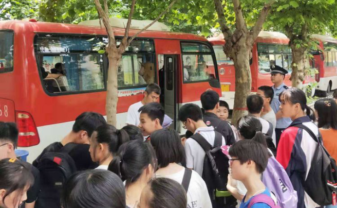 7月3日上午,考生们在老师和派出所警务人员的指挥下有序上车。中午12时整,10辆小型客车组成的送考车队,在警车护送下缓缓驶出校园,路上警灯闪烁,车队有序驶向临潼城区,平安护送考生到达入住宾馆。