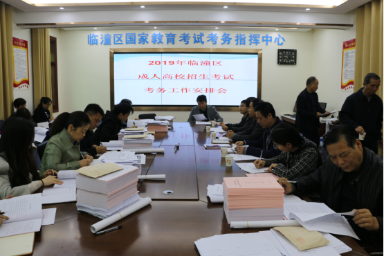 10月23日,西安市临潼区招生办召开2019年临潼区全国成人高考考务工作安排会,各考点主考、副主考、考务员,以及招办考务人员参加了会议。