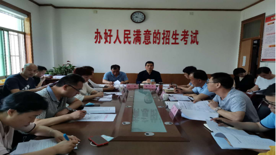 会上,鄠邑区教育考试中心负责高考考务干部组织参会人员认真学习高考体检安排文件;区教育考试中心副主任石涛同志强调了体检中要把握的注意事项及体检流程;郑广利主任宣布了高考体检领导小组,现场与各校签订体检工作目标责任书。
