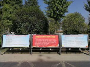 考点布置到位。考点门口和考场有醒目横幅标语、考生须知、考点平面图、考场测试场地示意图、考试流程等展板和路标等标识,考点欢迎词和考试须知循环播放,营造良好考试氛围。