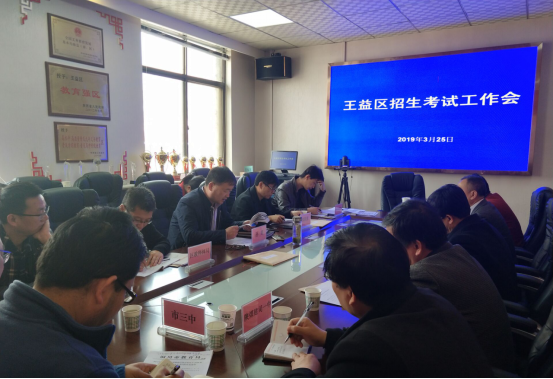 为做好2019年的招生考试工作,3月25日铜川市王益区召开2019年全区招生考试工作会。会议由王益区教科体局副局长孙鑫主持,各考点主考和副主考、各高中和初中学校领导、区考试管理中心全体工作人员参加会议。