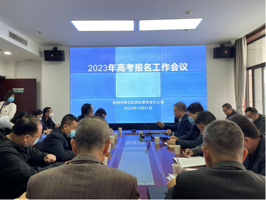 陕西省2023年高考报名将于11月1日-10日进行。宝鸡市陈仓区积极安排部署高考报名工作,于10月21日上午,召开了2023年高考报名工作会。区公安局、区养老经办中心、区教体局基教股和职教股、全区各高职中副校长、教务主任、业务员及考管中心全体人员参加了会议。