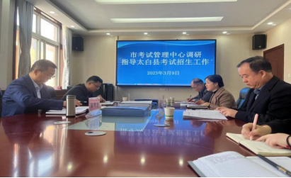 3月9日,宝鸡市考试管理中心副主任安峰岗带领自考社考科人员深入太白县考试管理中心调研指导考试招生工作,县教体局副局长樵少辉陪同调研。调研组首先查看了太白县考试管理中心各类工作资料,随后召开了工作座谈汇报会。会上,县考试管理中心主任王舒宁从单位机构人员经费情况、考试招生制度改革有关工作进展情况、工作创新及谋划、意见建议等四个方面对全县考试招生工作作了认真全面的汇报。通过检查资料及听取汇报,调研组对太白县考试招生工作给予了充分的肯定,认为全县考试招生各项工作能够积极统筹谋划,工作落实更加精细化,工作质量及水平全面提升,并对调研中的一些具体问题给出了指导性的答复及建议。同时,围绕2023年中考报名、高中学业水平合格性考试、高考等工作同与会人员进行了深入的探讨交流。