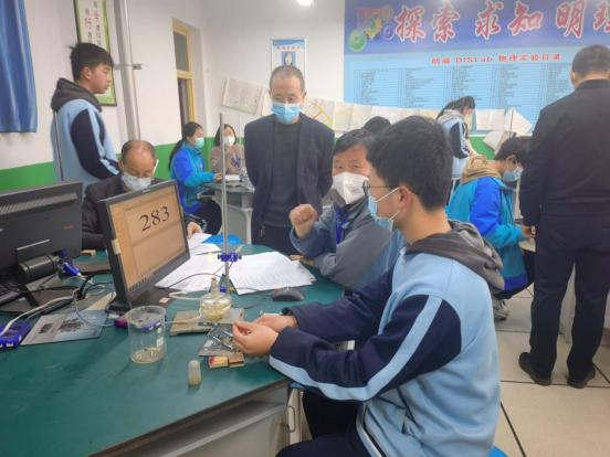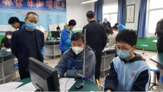 全区共有374名学生参加了数字化实验操作考试。区考管中心主任郭宏让、副主任曹林娟一行检查、督导了考点的考场设置、考试流程以及考试全过程。