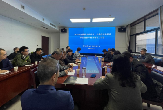 2023年高中学业水平合格性考试化学生物实验操作考核和信息技术机考在即,为了切实做好各项工作,宝鸡市陈仓区于4月13日召开了工作安排会,各高中主管副校长、考务员和考试管理中心相关人员参加了会议。