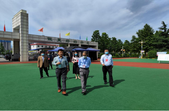 图为市教育局党组成员李天让一行在虢镇中学考点内检查考试组织情况