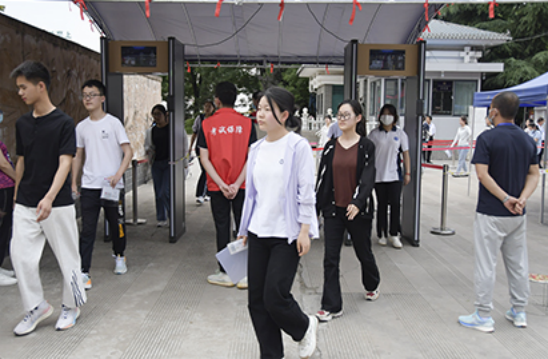 考生通过安检门进入考点