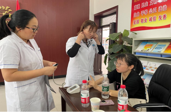考点医务人员正在为考试中身体不适的考生检查治疗