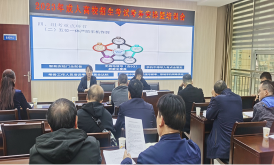 培训会议强调,成考属于国家级考试,各考点一定要高度重视,成立机构,周密部署,层层夯实责任;加强对涉考人员的培训,要对关键环节、重点点位、特别是要对新进人员进行针对性学习培训;做好安全保密工作,要对考点内外进行拉网式排查,确保考生平安考试,考试工作人员严禁发布与考试有关的材料、视频以及图片,杜绝舆情发生。要求全体涉考人员认清成考面临的复杂严峻形势,认真履职,切实增强责任意识,从考务培训、宣传服务、入场安检、考务管理、舆情管控、考风考纪等方面严格管理,全面落实组考工作责任,确保考生安全、考试平稳顺利。