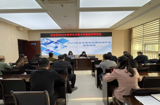 11月28日,宝鸡市金台区召开了2024年普通高等学校艺术类专业招生考试考务培训会。考点主考、副主考、考务员,各涉考学校考务员以及考管中心全体人员参加培训。