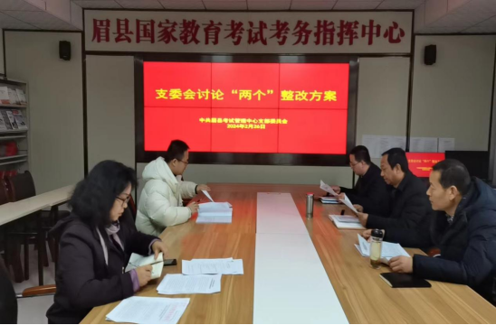 为进一步巩固学习贯彻习近平新时代中国特色社会主义思想主题教育成果,深化考试招生改革,以党建引领业务发展,2月26日上午,宝鸡市眉县考试管理中心党支部召开支委会,会议由支部书记侯云飞同志主持。
