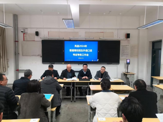 本次考试共设置1个考场,分4个场次进行考试。为规范外语口语考务工作,保障考试公平公正、安全有序进行,县考管中心于考前制定了《凤县2024年普通高校外语口语机考实施方案》,召开了考务安排及培训会,从考试准备、考务管理、后勤保障等方面细化措施,责任到人,确保考试各个组织环节有制度、有检查、有预案、有细则,有效保障了考试的顺利进行。
