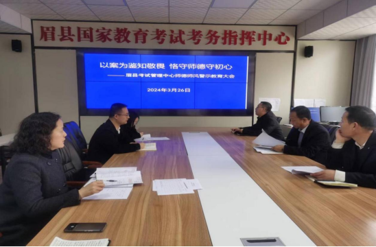 为强化师德师风建设,规范干部职工职业行为,营造风清气正的教育考试氛围,3月26日下午,宝鸡市眉县考试管理中心召开了以“以案为鉴知敬畏,恪守师德守初心”为主题的师德师风警示教育专题会议,会议由支部书记侯云飞同志主持。