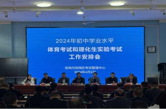 4月2日,宝鸡市凤翔区召开2024年初中学业水平体育考试和理化生实验操作考试工作安排会。凤翔区教体局党组成员、副局长张宏军出席会议并作了讲话,人劳股股长汶小宗,监察室副主任田梅,基教一股副股长魏宏斌,宝鸡市凤翔区考试管理中心全体人员和初中九年制学校校长、主管副校长、教务主任等六十余人参加会议,会议由凤翔区教研室副主任赵永峰主持。