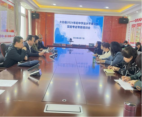 为了确保考试顺利进行,太白县提前安排部署,认真组织实施,及时成立了县初中理化生实验操作考试领导小组,详细制定了《2024年太白县初中学业水平考试实验操作考试实施方案》,选聘了18名专业教师承担监考工作,并在考前召开考务工作培训会。会上进一步明确了考试纪律、考试程序、人员分工及工作职责,县教体局分管领导就做好考试组织工作提出了四个务必:一是思想务必要重视。中考实验考试作为中考重要的组成部分,社会关注度不断提升,全体人员要充分认识到此次考试的重要性;二是组织务必要周密。考前对实验室准备情况进行再检查、再确认,人员及分工要再细化、再落实,确保全体涉考人员有分工、有协作、有配合;三是程序务必要精准规范。考试组织各个环节要严格按照实验考试步骤进行,确保组织严密、评价严谨、结论精准;四是过程务必要安全。涉考人员要注意出行交通安全及考试过程中的操作安全,确保实现“平安考试”目标。