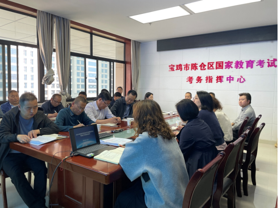 会议由宝鸡市陈仓区考试管理中心党支部书记、副主任曹林娟主持。业务主管赵沛宁从合格考考务要求、监考员职责、考试流程做了培训,并就几个关键环节及注意事项做了说明。张军平从考试监控录像设置、身份验证操作、外语听力播放等方面做了信息技术保障培训。