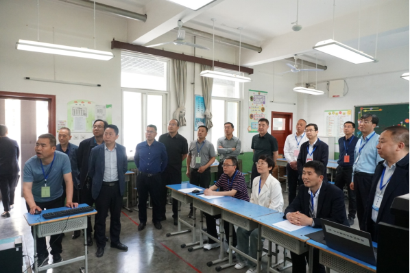 图为11日上午,省教育考试院副院长和社教、宝鸡市教育局副局长王建昌一行在主控室督查指导面试工作