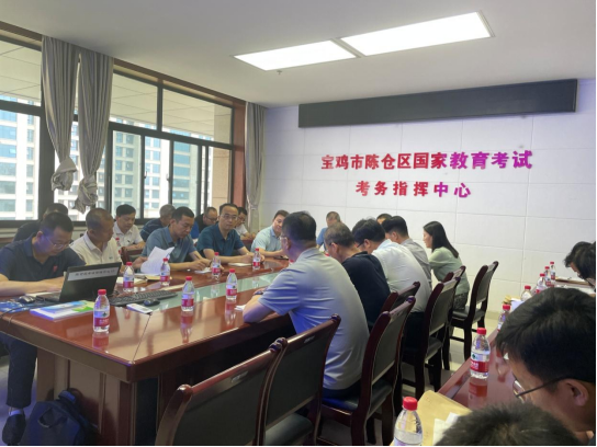 会议由宝鸡市陈仓区考试管理中心党支部书记、副主任曹林娟主持。业务主管王玉国先介绍了高考基本情况,然后对生源校必做事项和考点学校考务工作要求等做了培训,并就注意事项做了特别提醒。张军平从巡考综合平台的使用、专网维护、网上巡查视频监控系统、外语听力播放等方面做了信息技术保障培训。
