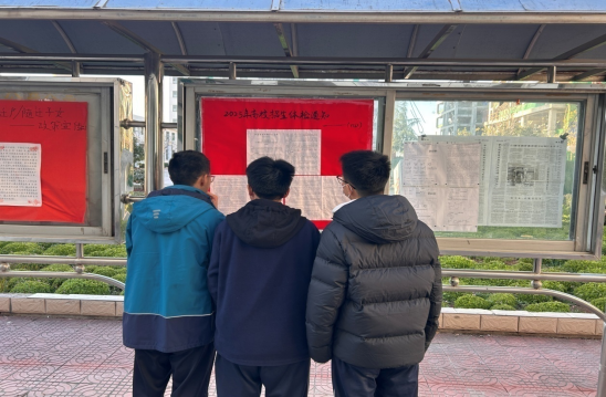 二、加强政策宣传,提高社会知晓。以《普通高等学校招生体检工作指导意见》为依据,利用县级、校级微信平台广泛宣传高考体检政策规定。各涉检学校充分利用班会课、宣传栏等形式向考生“零距离”解读高考体检的重要性和必要性,帮助考生从思想上、认识上理清高考体检对个人未来学业发展的影响,指导考生有效做好学业规划。