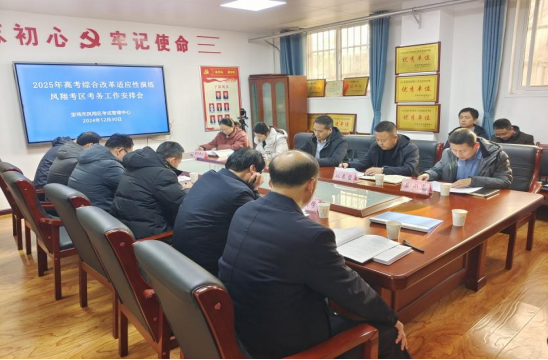 12月30日下午,宝鸡市凤翔区召开2025年高考综合改革适应性演练考务工作安排会,凤翔区教体局党组成员赵爱武,监察室副主任田梅,各考点主考、副主考及考试管理中心相关人员参加会议,会议由凤翔区考试管理中心主任张春哲主持。