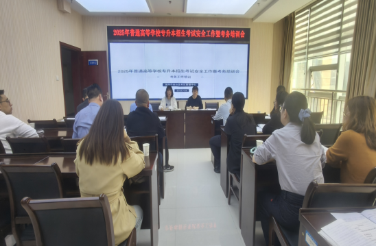 4月8日下午,宝鸡市2025年普通高等学校专升本招生考试安全工作暨考务培训会在金台区考试管理中心召开。五所考点学校的分管领导、考务人员及考管中心全体工作人员共计十余人参加会议。
