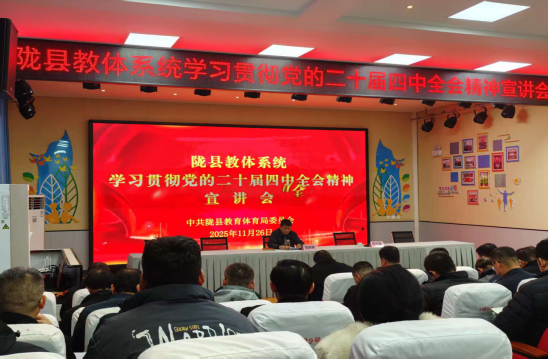 11月26日,宝鸡市陇县教体系统组织召开学习贯彻党的二十届四中全会精神宣讲会,陇县教育体育局党委书记、局长范永林同志在认真领会宣讲要求基础上,对全会精神进行深入细致讲解,会议气氛热烈、奋进。