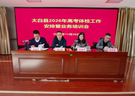 一是加强组织领导,压实工作责任。及时成立了由县教体、卫健部门主要负责同志任组长,分管领导任副组长,县考试管理中心、县医院及相关学校主要负责人为成员的高考体检工作领导小组,全面负责体检工作的组织协调。结合本县实际,制定了翔实的2026年高考体检工作方案,并于11月26日专题召开“太白县2026年高考体检工作安排暨业务培训会”,对体检工作场地布置、流程规范、注意事项等进行了周密部署和系统培训。相关单位及人员逐级签订目标责任书,进一步统一思想,明确任务,确保责任落实到位。
