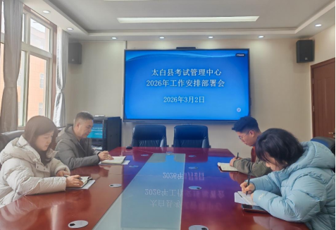 一元复始,万象更新。为了深入贯彻落实各级教育工作会议精神,全面梳理2025年工作成效,系统谋划2026年重点任务,进一步统一思想、凝聚共识、明确目标、压实责任,3月2日,宝鸡市太白县考试管理中心组织全体人员召开了2026年工作安排部署会。