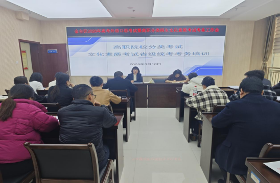 为全面部署2026年高考外语口语考试与高职分类招生文化素质考试相关工作,确保两项考试安全、平稳、有序实施,3月10日,金台区考试管理中心组织召开专题考务工作会。区考管中心全体工作人员,各考点负责人及考务人员参加会议。