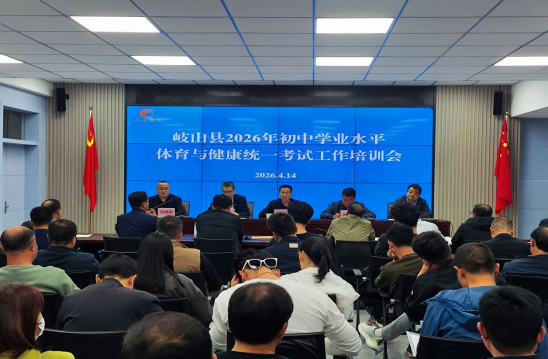 为了切实做好2026年初中学业水平体育与健康统一考试工作,4月14日下午,岐山县召开2026年初中学业水平体育与健康统一考试工作培训会。全县各初中校长、县初中学业水平体育与健康统一考试工作领导小组成员、参与考试的全体考务人员共60多人参加了会议。会议由岐山县考试管理中心主任黄文杰主持。