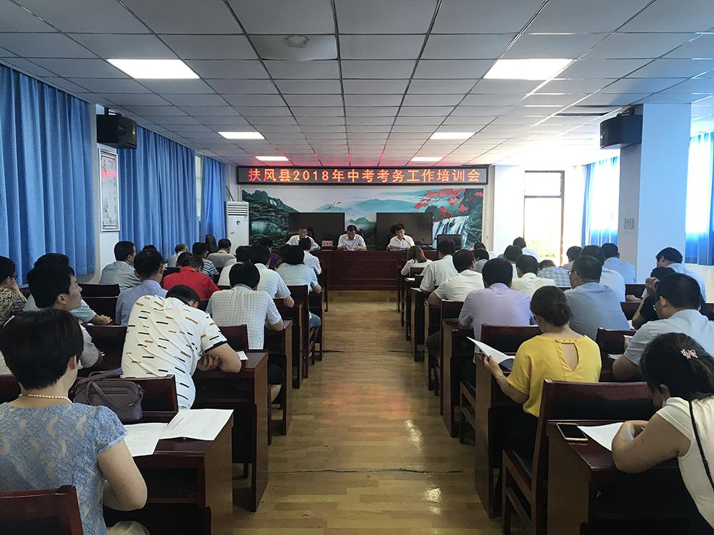 近日,宝鸡市扶风县召开2018年中考考务工作培训会,全面部署中考考务工作。会议宣读了扶风县2018年初中毕业学业考试组织机构及人员安排,从四个方面对与会人员进行了考务工作培训:一是分析了高考与中考在考务细节方面的不同,强调了中考考务工作重点;二是对2017年中考考务中存在的问题进行了通报,要求各考点要严格施考程序,杜绝同类考务差错;三是对规范化施考程序及具体操作要求进行了详细培训;四是对指挥系统、视频监控、试题卷安全、监考及考务人员、英语听力考务、考生带队及安全等方面的管理提出了规范要求。