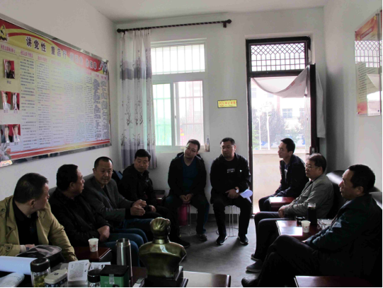 村领导向宝鸡市考试管理中心人员介绍近期村上脱贫攻坚工作情况