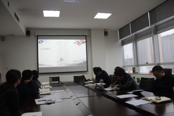 活动刚一开始,《公民道德歌》悠扬的旋律就响遍了全场,“爱国守法、明礼诚信……”唱出了立德的重要;紧接着以“君子贵人贱己,先人而后己”、“莫以恶小而为之,以善小而不为。惟贤惟德,仁服于人”两句道德经典,阐明凡事要多考虑别人,多奉献,做好每一件小事,在小事中立德修身,升华自己。全体干部职工从知荣辱、守法纪、敬业爱岗、孝老爱亲、做好公民五个方面做出了承诺,将此次活动推向了高潮。