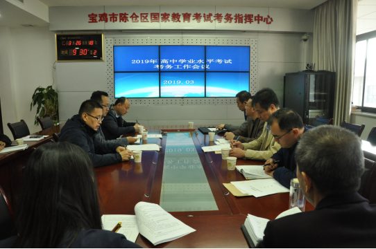 为全面做好2019年高中学业水平考试工作,宝鸡市陈仓区于3月26日上午召开会议,对学业水平考试进行了安排部署。各主管副主考、考务员和信息系统管理员参加了会议。