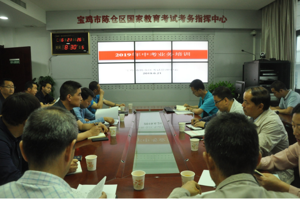 2019年初中学业考试将于7月3日—5日进行。陈仓区提前安排,精心部署,于6月21日上午召开了中考考务培训工作会,各中考考点主考、主管考务的副主考、考务员、听力播放操作员等20余人参加了会议。