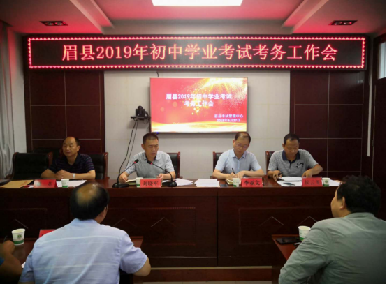 宝鸡市眉县教体局党委委员、人劳股股长蒋英宣读了2019年中考各考点主考、副主考及局派出工作人员分工安排,眉县考管中心主任侯云飞安排部署了2019年中考考务工作。