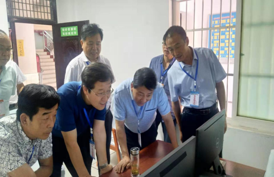 牛建强一行在西街中学考点通过视频监控巡视考场考试情况