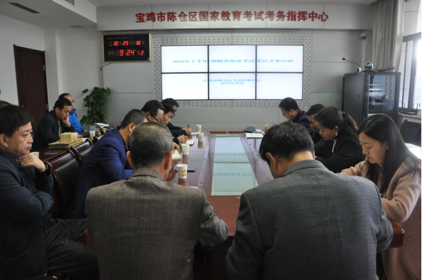 2019年下半年中小学教师资格考试笔试将于11月2日举行。宝鸡市有4056名考生在陈仓区参加考试,分设在陈仓高中、实验小学、虢镇初中三个考点的127个试场。10月29日,陈仓区组织各考点主考、副主考、考务员和信息管理员以及区考试管理中心全体人员召开培训会。