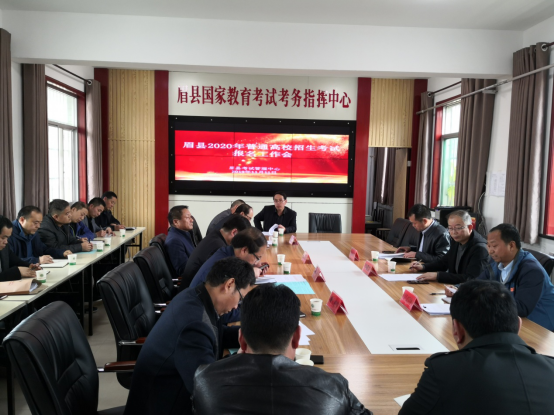 11月11日下午,宝鸡市眉县考试管理中心召开2020年普通高校招生考试报名工作会,眉县考试管理中心主任侯云飞、县教体股股长丁平安、各高中、职业中学校长、分管业务副校长、教务主任、信息员参加会议。