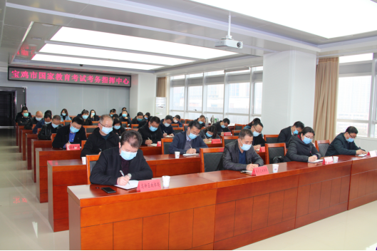 宝鸡市考试管理中心党支部书记、主任杨新科在总结2019年全市考试招生工作的基础上,重点对2020年全市考试招生工作进行了安排部署:2019年在市委、市政府和市县考试行政部门的正确领导和大力支持下,全市考试招生工作在安全保密、考务管理、信息公开等方面精确发力,全年10大类15次考试安全规范实施,顺利实现平安考试目标,赢得了各级领导的充分肯定和社会各界的广泛好评;2020年全市考试招生工作将以习近平新时代中国特色社会主义思想为指导,深入学习贯彻党的十九届四中全会、市委十二届七次全会和全市教育大会精神,按照市委、市政府和市教育局及上级业务部门的决策部署,以防范化解考试招生重大风险为重点,不断推进考试招生工作治理体系和治理能力现代化建设,确保各项考试招生工作安全规范实施、各项改革平稳有序推进,努力办好人民满意的考试招生事业。