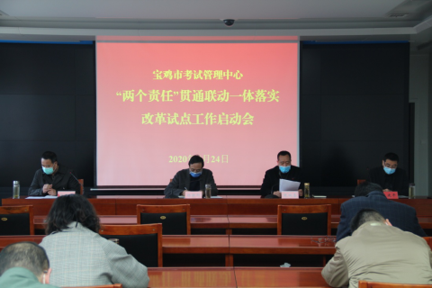 4月24日上午,宝鸡市考试管理中心召开“两个责任”贯通联动一体落实改革试点工作启动会,全面动员部署“两个责任”贯通联动一体落实改革试点工作,明确工作任务和目标要求,并邀请专家作了专题讲座。