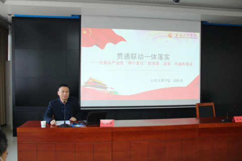 最后,宝鸡文理学院副教授刘晓勇围绕“两个责任”贯通联动一体落实改革试点的背景、沿革、内涵和要求,作了专题讲座。讲座内容丰富,深入浅出,针对性强,使大家深受教育和启发。