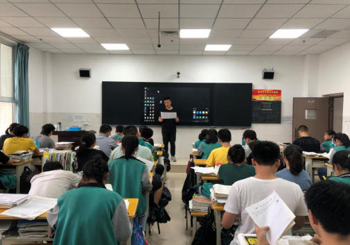 班主任老师带领学生学习考生守则和违纪处分相关条款