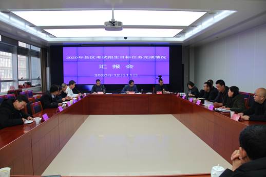 12月11日上午,宝鸡市考试管理中心召开2020年县区考试招生工作目标任务完成情况汇报会,全面总结交流2020年考试招生工作,谋划2021年及“十四五”期间全市考试招生工作。各县区考试管理中心主任及市考试管理中心中层以上干部参加会议。