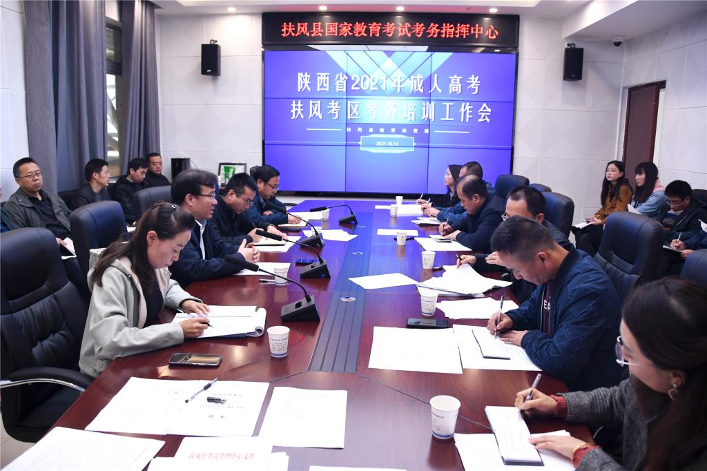 会议对组考工作进行了全面安排,宣读了2021年成考扶风考区组织机构及人员安排,对参会人员进行了详细考务培训。县局领导与各考点主考、副主考以及后勤保障负责人签订了责任书。